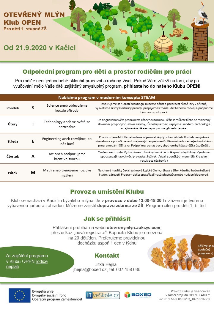 Nabídka pro rodiče žáků 1. stupně - Klub OPEN Kačice