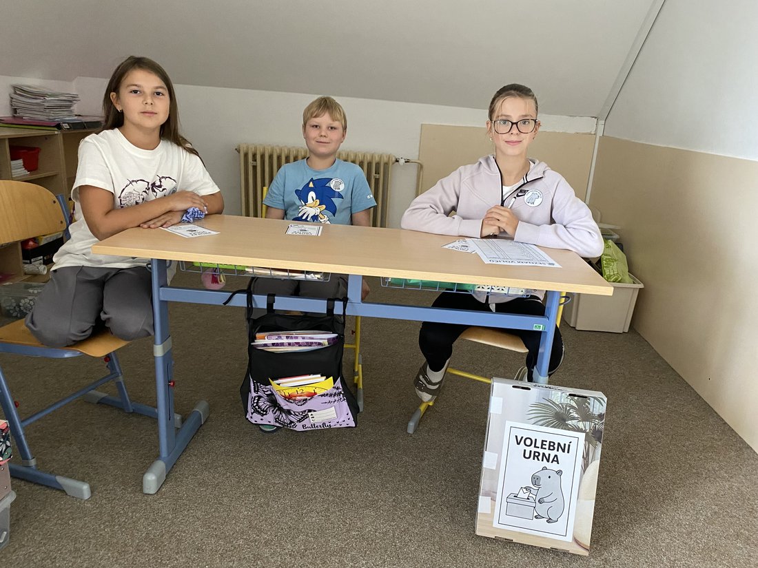 Aby byly volby co nejvíce podobné těm skutečným, vyrobili jsme si voličské průkazy, volební lístky, obálky a samozřejmě i volební místnost s plentou, volební komisí a urnou. Vše probíhalo podle pravidel – tajná volba, sčítání hlasů i slavnostní vyhlášení výsledků.