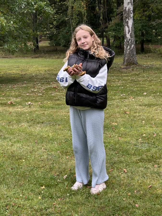 Příjemně jsme se prošli, nasbírali jsme dokonce i houby (ty jedlé jsme si přinesli s sebou, ty nejedlé jsme si jen prohlédli), vyrušili z úkrytu zajíce a v neposlední řadě zbyl prostor i pro dobrodružnou hru - proběhla schovávaná, vymýšlení úkrytů i číhání na nepřítele (byť se jednalo o vozidlo zaměstnanců správy parku, které nás několikrát míjelo).
