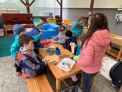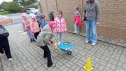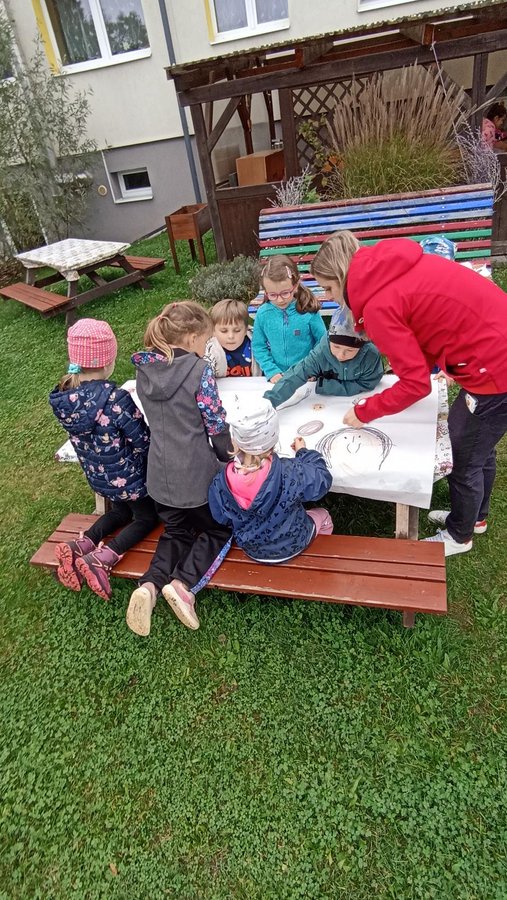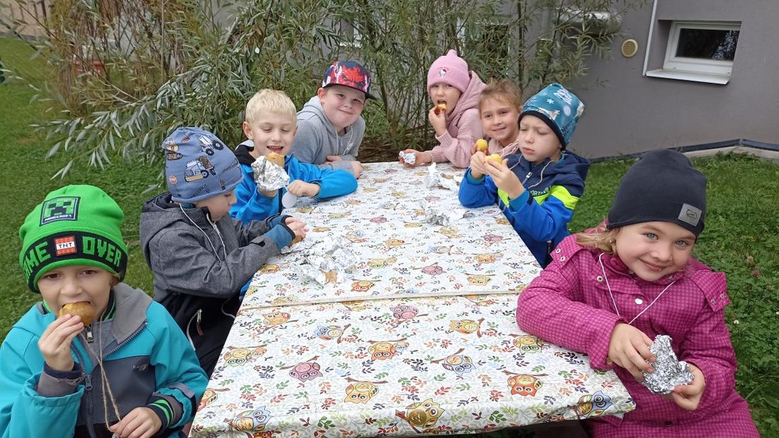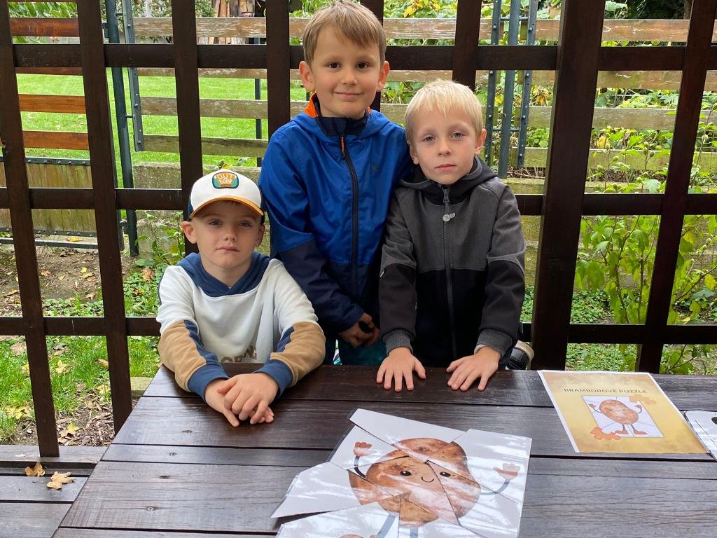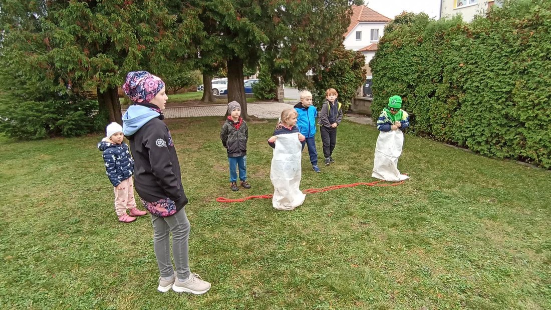 Opět přišel podzim a tedy čas uskutečnit společné podzimní setkání žáků prvních tříd s předškoláky z mateřské školy. Sešli jsme se na družinovém hřišti a po rozdělení do družstev se děti postupně vydávaly na trasu, kde je čekalo pět zastávek s úkoly. Vyzkoušely si hod bramborou do koše, skok v pytlích nebo slalom s nákladem v kolečku. Ve venkovní školní učebně mohly zjistit, jak dobře umí skládat puzzle v podobě velké brambory. Na závěr je čekalo tvoření společného díla, při kterém si procvičily stříhání, lepení, kreslení a také vzájemnou spolupráci. Na stanovištích ochotně pomáhalo pět žáků ze čtvrté třídy a za to Anhel, Agi, Domče, Pátě a Filipovi Červenkovi moc děkujeme. Po společném hraní na zahradě mateřské školy nás čekalo vyhodnocení. Děti dostaly za odměnu medaile a ochutnaly teplou bramboru a čaj. Setkání bylo příjemné, takže se už těšíme na jarní společné setkání.