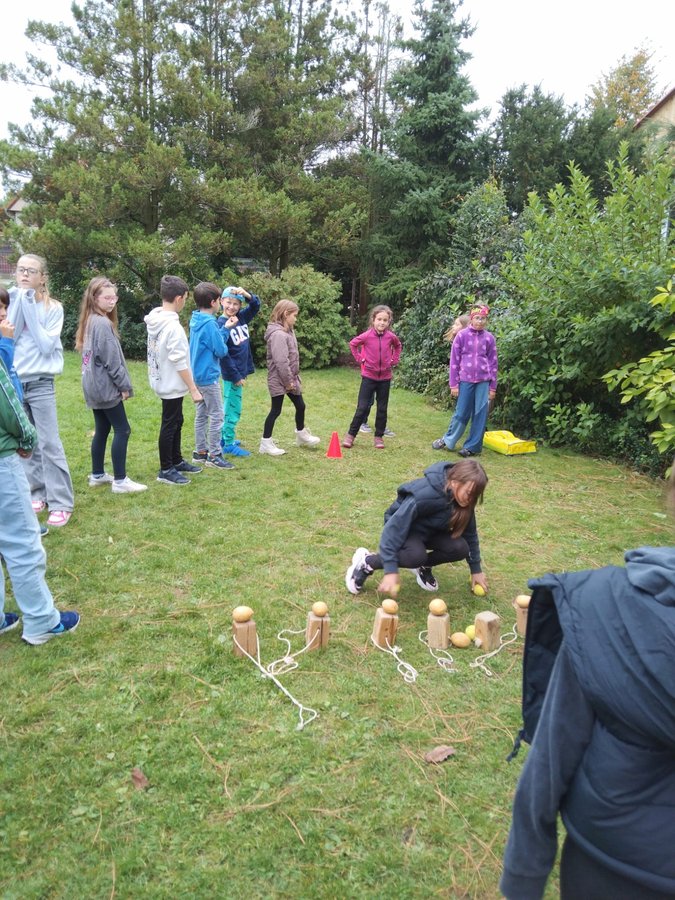 Prvňáčci s předškoláky ze školky měli Bramboriádu. A my starší nic? Kdepak, vrhli jsme se do her a soutěží na družinovém hřišti. A disciplíny byly také s bramborami, proto jsme naše zábavné odpoledne nazvali příznačně Bramborohraní. Za příjemného počasí a v radostné atmosféře jsme ochutnávali i bramborové dobroty. Ať žijí brambory!