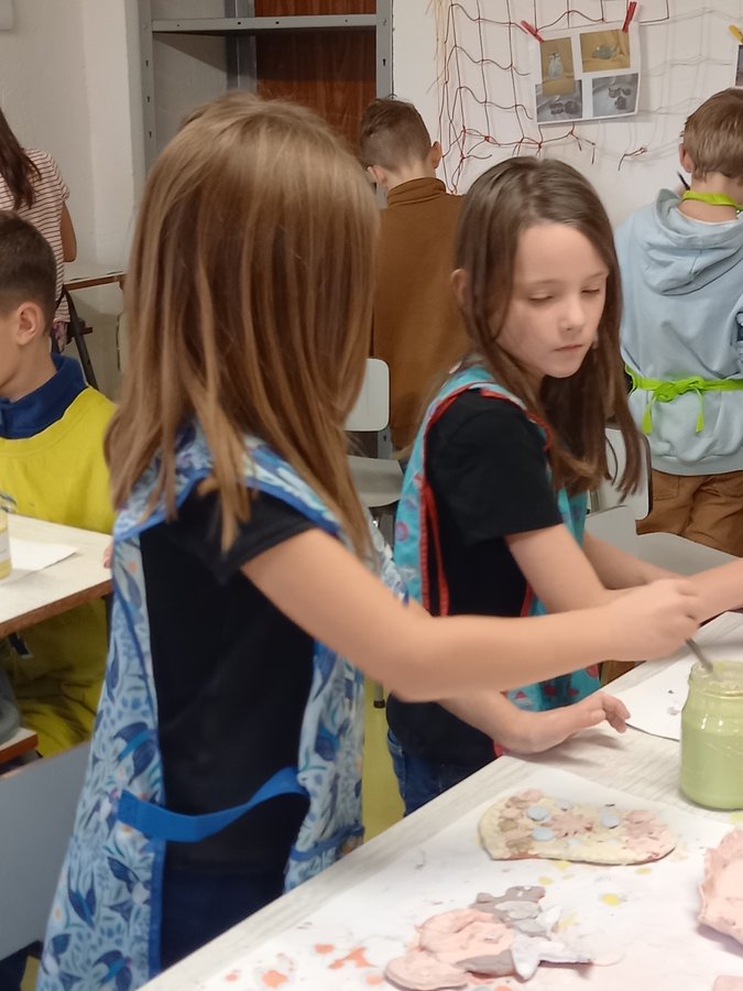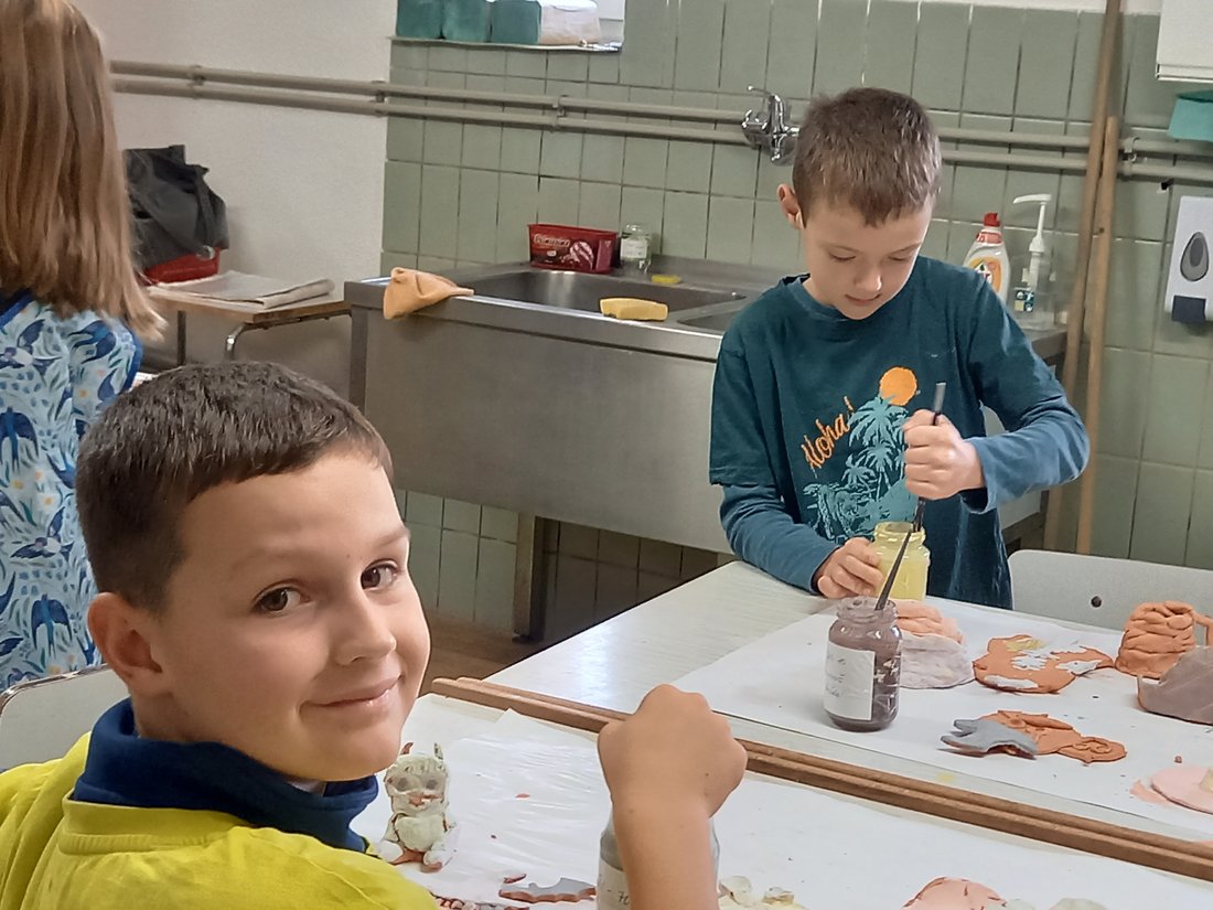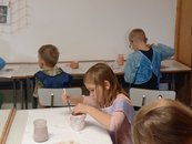 I v letošním školním roce probíhá ve škole keramický kroužek, navštěvuje ho šestnáct žáků první, druhé a třetí třídy. Prima parta holek a kluků se zde snaží rozvíjet své výtvarné schopnosti. Učí se pracovat s keramickou hlínou, poznávat její vlastnosti a tvarovat ji dle svých představ. Od začátku školního roku se dětem podařilo vyrobit celou řadu zajímavých výrobků, jako například tácek na oříšky ve tvaru dýně, čarodějnici, různé misky a mističky, srdíčka atd. Mají za sebou i první zkušenosti s glazováním. Teď se všichni společně těší na první vypálené výrobky, které mnozí vyráběli s láskou pro své rodiče, prarodiče či sourozence pod vánoční stromeček.