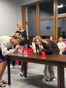 Večerní program byl pestrý – společenské hry, soutěže družstev např. „příběh na P“, „Kimova hra“, netradiční soutěže s balónky, kelímky a brčky, dále pak oblíbené „místa si vymění“, jeden večer byl věnován KAHOOTu (zimní sporty, HP, pohádky) a diskotanci. V hotelové jídelně jsme měli k dispozici dataprojektor a reprobednu, spustili jsme „Just Dance“ a neuvěříte, že i ti, kteří byli „hrozně unavení“, tančili jako o život 😊.