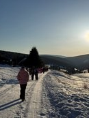 Středa byla odpočinkovým dnem, lyžovali jsme pouze dopoledne a po obědě jsme se vydali skibusem na Pomezní Boudy, kde jsme ochutnali výborné palačinky, lívanečky, horkou čokoládu a čajíky. Zpět jsme se vydali pěšky. Procházka, která trvala přes hodinu, nám na sluníčku ubíhala rychle. Velmi jsme ocenili pohodlí vycházkových bot, protože cesta v lyžařských botách od skibusu k penzionu (! dvakrát denně), byla pro mnohé noční můrou 😊.