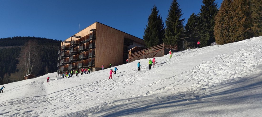Od 18. do 23. ledna se dvaatřicet žáků lánské školy zúčastnilo lyžařského kurzu v Malé Úpě v Krkonoších. Ubytováni jsme byli v krásném Horském penzionu Javor.