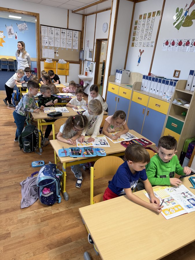 V 1. A si předškoláci vyzkoušeli český jazyk, matematiku a prvouku. Za pomoci prvňáčků poznávali první hlásky slov na obrázcích, počítali příšerkám oči, nohy i uši, a nakonec se dozvěděli zajímavosti o lidském těle. Prvňáčci dětem předvedli, jak jim jde čtení a vyučovací hodina utekla jako voda.