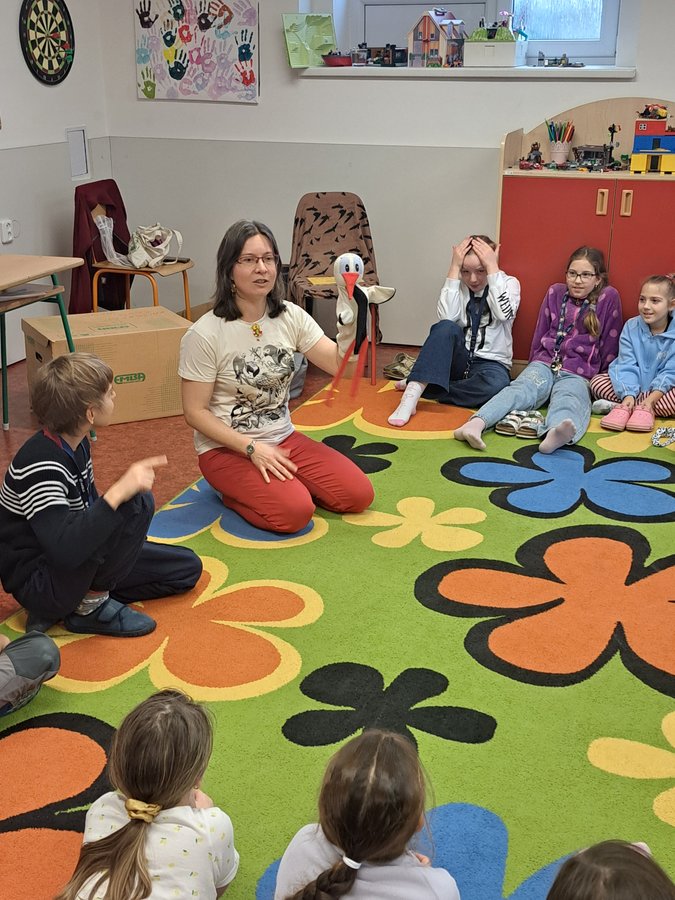Dnes se žáci 3. a 4. třídy vydali na dobrodružnou výpravu do ptačí říše. Průvodkyní nám byla lektorka Hanka, která s sebou přivezla i čápa Václava – maskota celé akce, který si okamžitě získal sympatie všech (a to nemusel ani zakrákat).