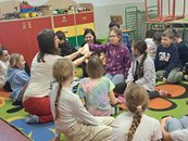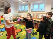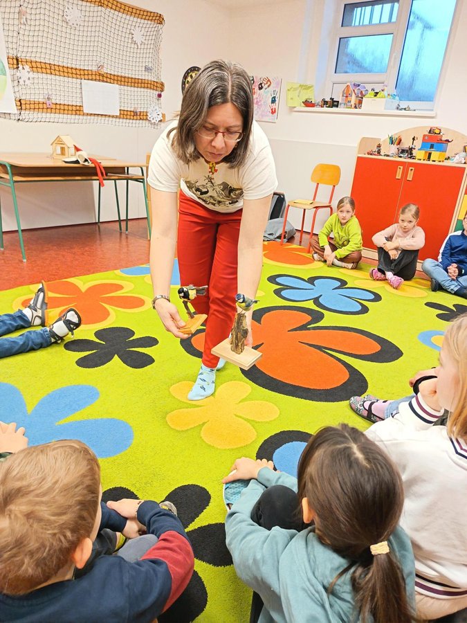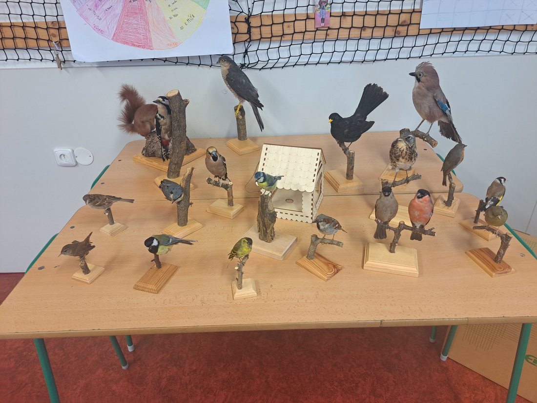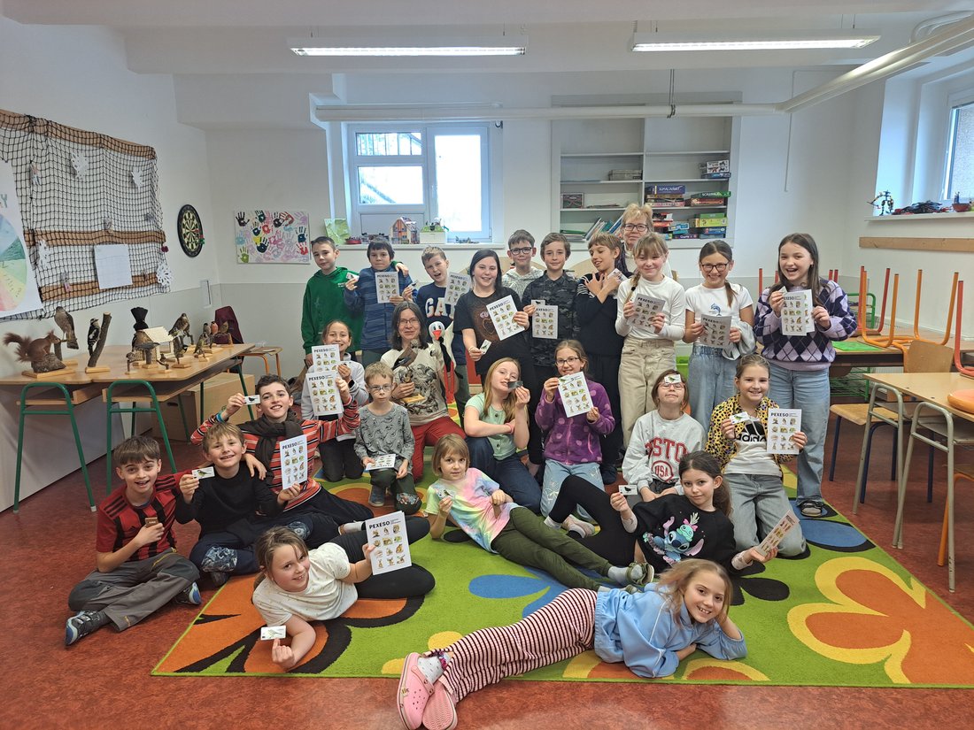 Protože jen sedět a poslouchat by byla nuda, zahráli jsme si i hru na ptáčky. Děti si vybraly svůj druh a sbíraly kartičky s potravou, kterou má rád. Jenže pozor! Mezi nimi kroužil krahujec, kterého si s velkým nasazením zahrála paní učitelka. Utíkalo se, schovávalo – ptačí svět zkrátka není žádná legrace!