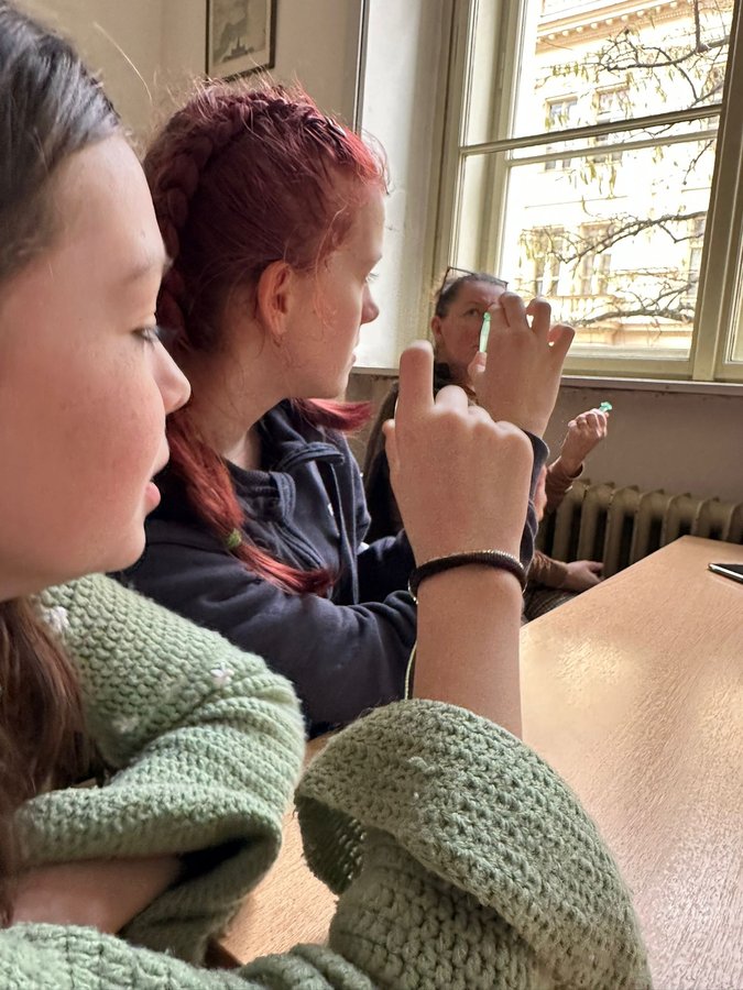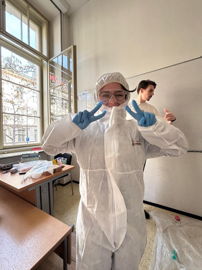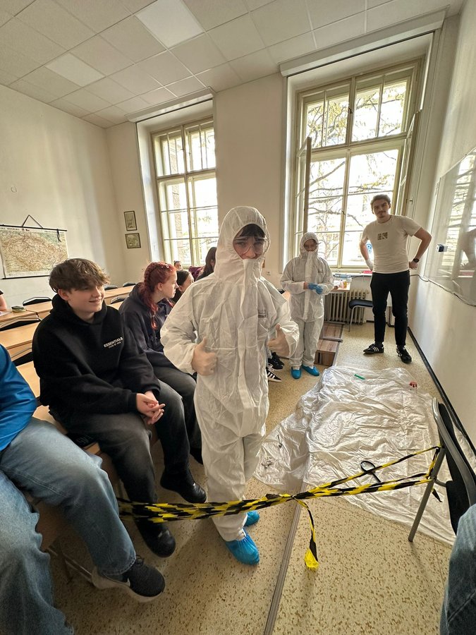 Hned na úvod si oblékly ochranné obleky, aby se mohly vžít do role skutečných kriminalistů. Na modelové „místo činu“ pak pečlivě označovaly důkazy, přemýšlely nad možným průběhem vyšetřování a společně debatovaly o tom, jak by postupovali profesionálové.