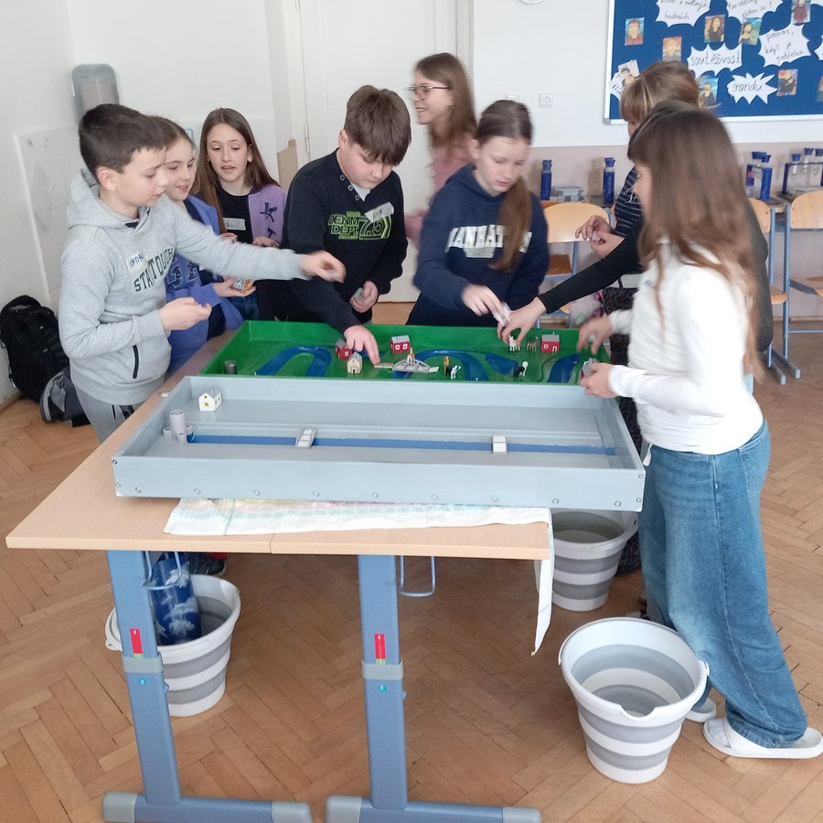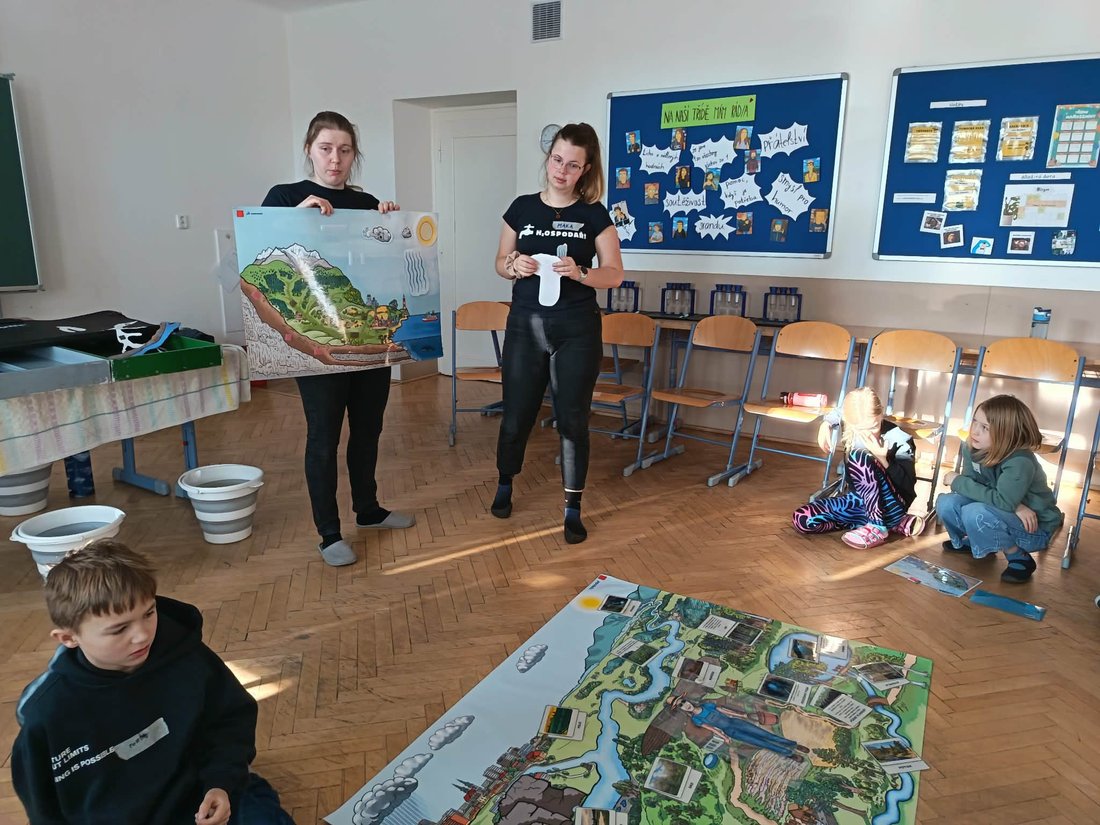 V pátek přijely na Lány lektorky ze společnosti H2Ospodař, která nabízí celou řadu osvětových programů na téma šetrného hospodaření s vodou. Nás nejvíce zaujal workshop Voda v krajině. Během dopoledne se ho postupně zúčastnili žáci 3. a obou 5. tříd. V první části dvouhodinového bloku se žáci věnovali určování, vyhledávání a přiřazování obrázků různých vodních zdrojů do obrazu krajiny, přičemž nejprve museli podle popisu daný zdroj rozpoznat. V další části se pak seznámili s velkým i malým koloběhem vody v přírodě. Třetí a čtvrtá část byly zaměřeny objevitelsky. V prvním pokusu si žáci na modelech dvou typů krajin, přírodní a městské, prakticky ověřili, jaký typ koryta vodních toků je vhodnější, zda řeka ponechaná ve svém původním, meandrujícím korytě s množstvím tůněk a ramen, nebo regulovaná a narovnaná tak, jak vidíme zejména v lidských sídlech. Na pokus si nejprve oba typy prostředí připravili a modely doplnili o spoustu detailů. Při vlastním pokusu pak žáci s napětím sledovali, jak se obě koryta osvědčí při simulované povodni. Další pokus byl zaměřený na propustnost tří druhů půdy - písčité, hlinité a jílovité. Žáci měli nejprve odhadnout, která půda by byla nejvhodnější na pěstování rajčat, poté prakticky propustnost zjišťovali. Všechny činnosti, zarámované příběhem o výletu na venkov k babičce Hospodářové, byly skvěle připravené i lektorované. Žáci se na workshopu dověděli mnoho nových informací, které jim v budoucnu mohou být velmi užitečné, a to vzhledem ke stále častěji se vyskytujícím obdobím sucha i povodním. V boji s nimi nám pomáhá právě voda v krajině, její zadržování a správné hospodaření.