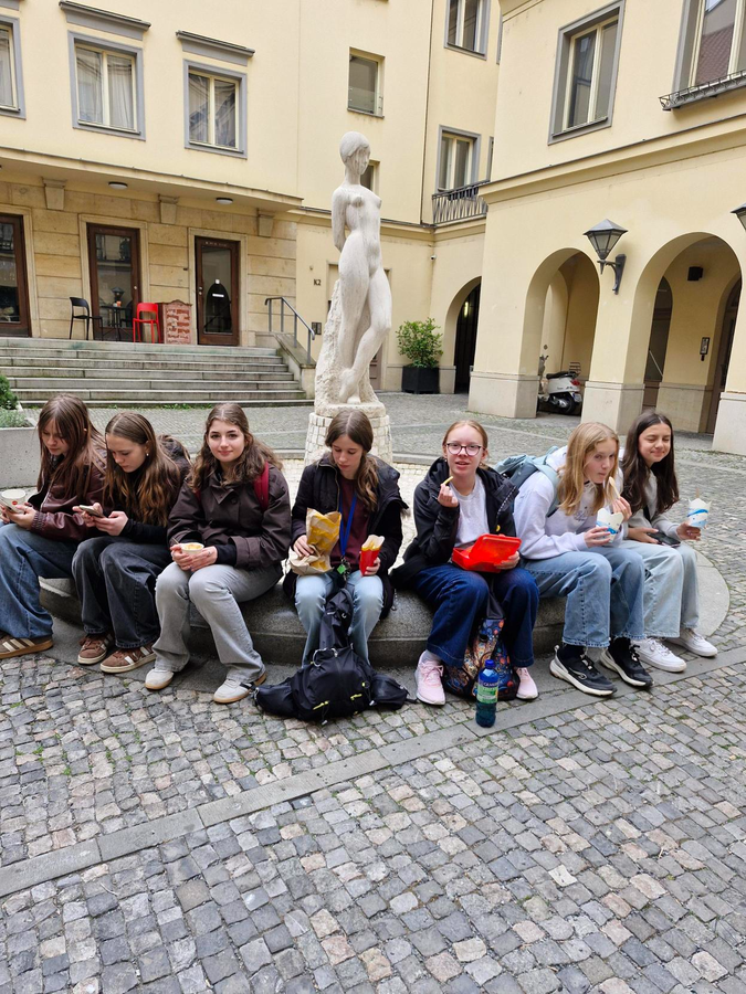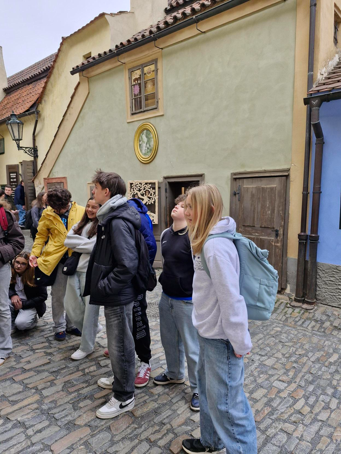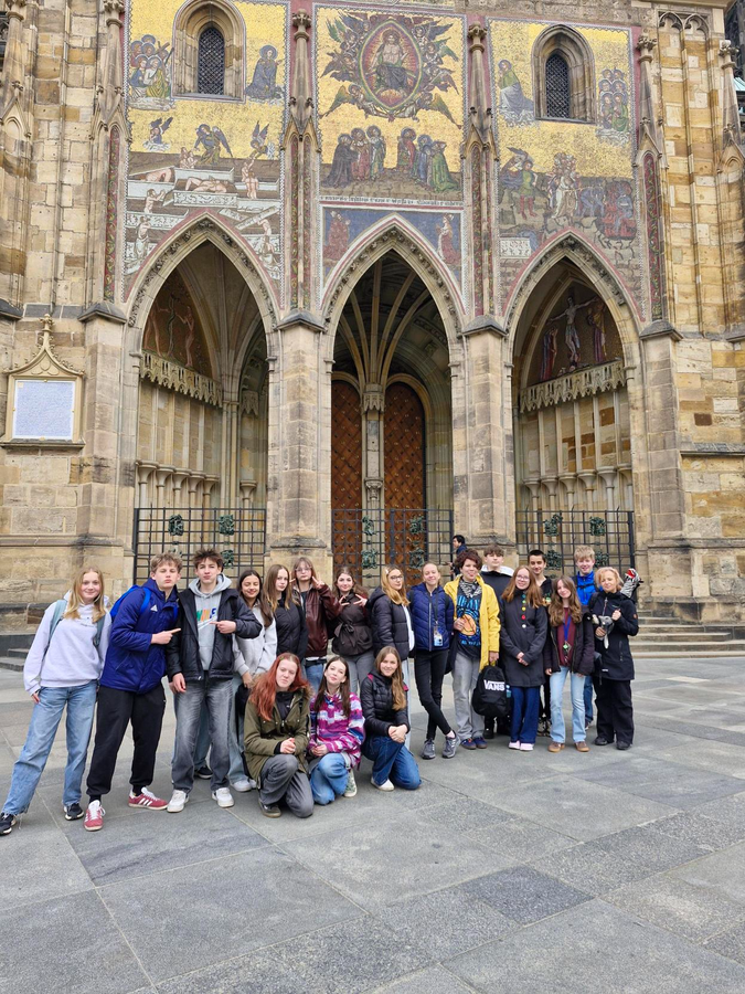 V pondělí vyrazili sedmáci jako každý rok do Prahy za gotikou. Lomené oblouky, chrliče, fiály, rozety a mnoho dalšího odhalili cestou přes Pražský hrad, Malou Stranu, Karlův most až na Staroměstské náměstí. Ti nejúspěšnější ulovili po cestě i deset „selfíček“ se sv. Václavem, a tím krásnou jedničku do dějepisu. Přes větrné počasí a rychlé tempo všichni úspěšně dorazili k cíli!