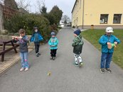 Čas běží rychle. Nedávno se naši prvňáčci setkali s předškoláky na podzimní Bramboriádě a je tady čas pro setkání jarní, věnované Velikonocům. Děti byly rozděleny do družstev. Každé družstvo si vybralo svého kapitána, poznal se podle barevného papírového vajíčka na krku. Pro účastníky byla připravena čtyři tematická stanoviště s úkoly. Posledním stanovištěm byla výtvarná dílna, kde děti vystřihovaly vajíčka, vybarvovaly je podle fantazie a lepily na předlohu se dvěma velkými zajíci. Před svačinkou v podobě mrkvičky a teplého čaje, si děti ještě stihly hrát na zahradě. Naše společné odpoledne zpříjemnilo hezké počasí.