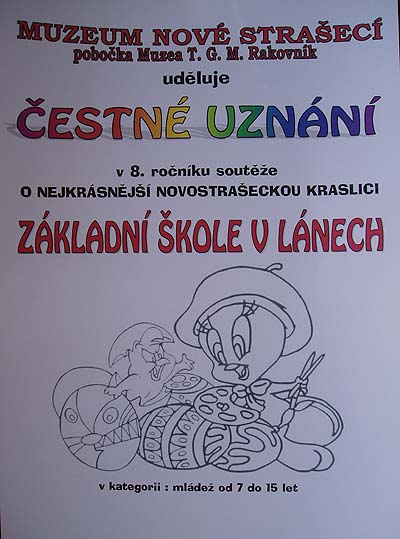 | březen | „O nejkrásnější novostrašeckou kraslici“ | žáci školy | čestné uznání | diplom |
